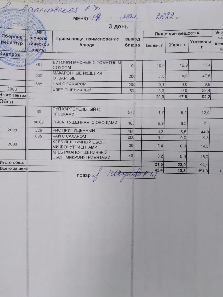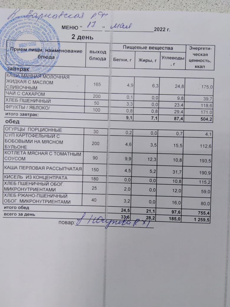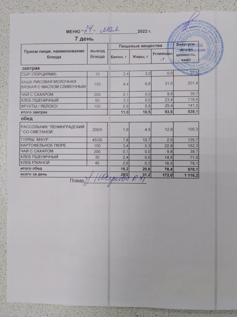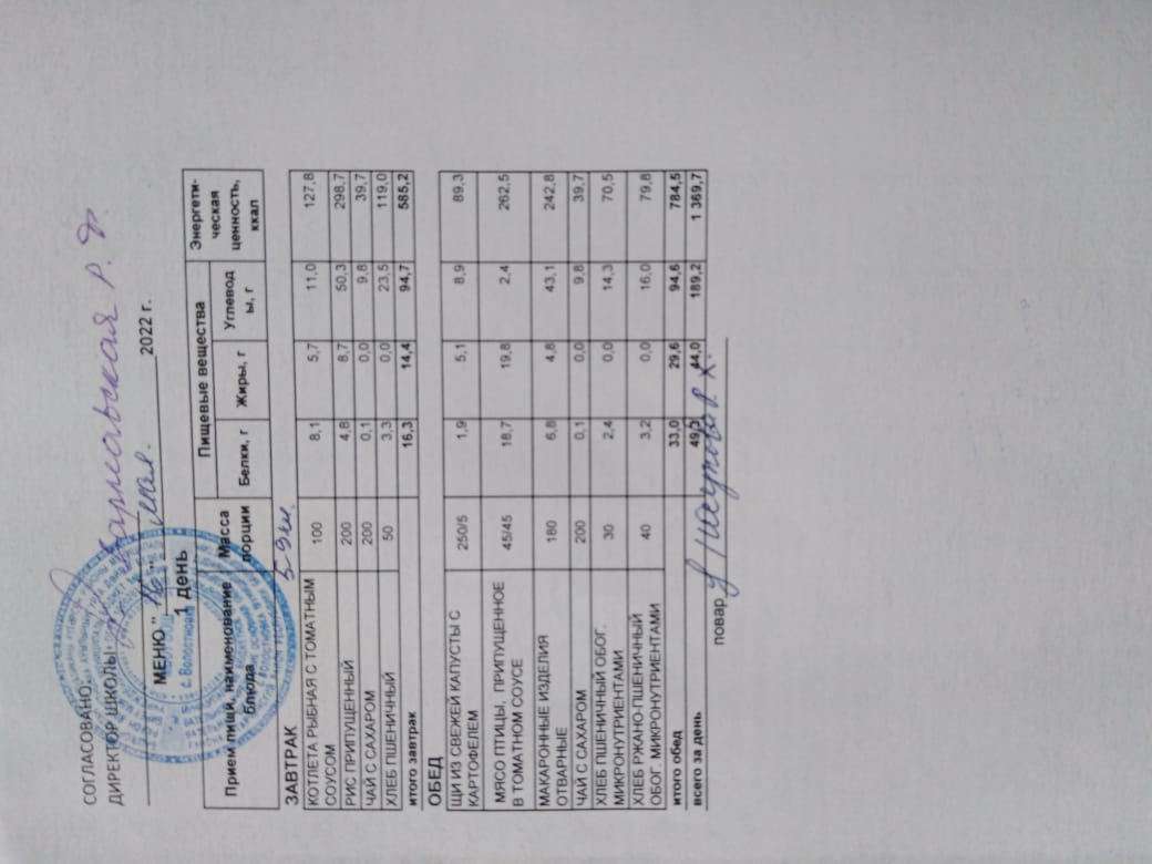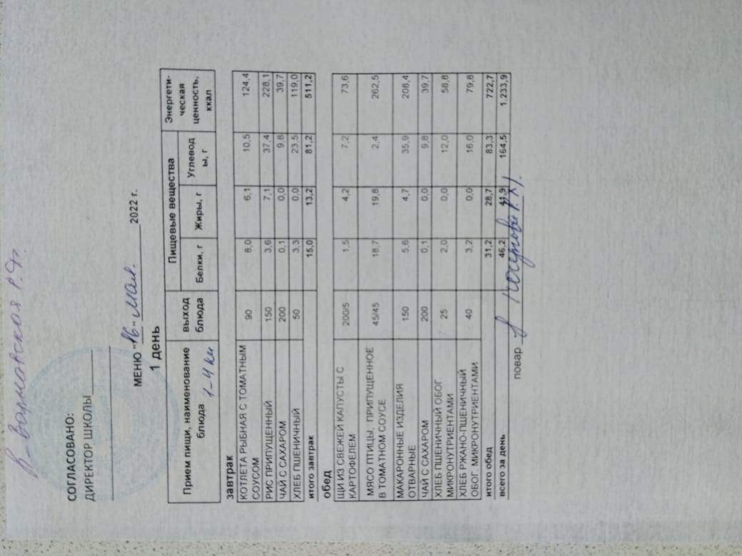 Стоимость школьного питания