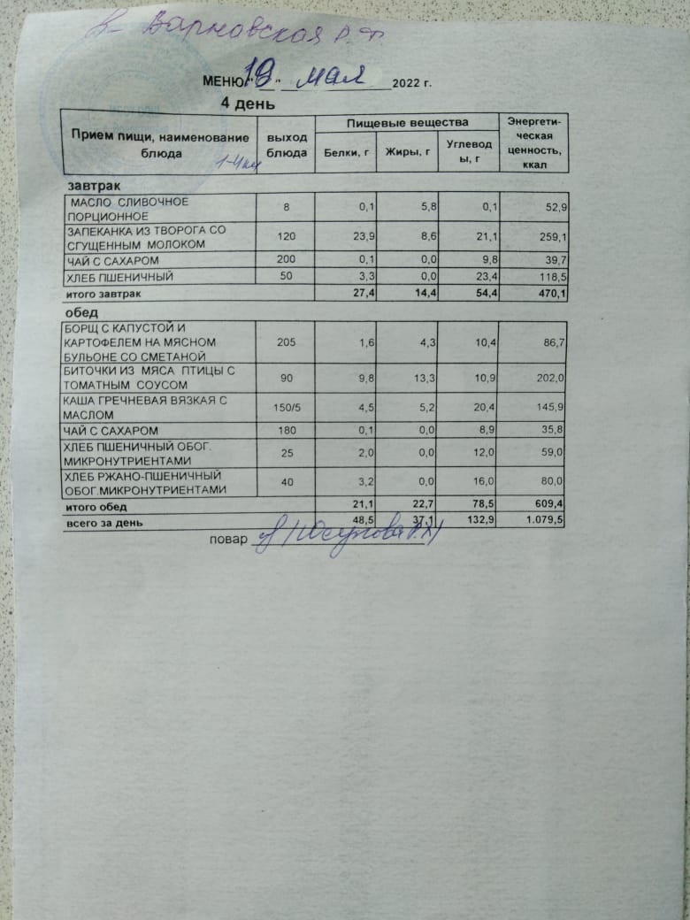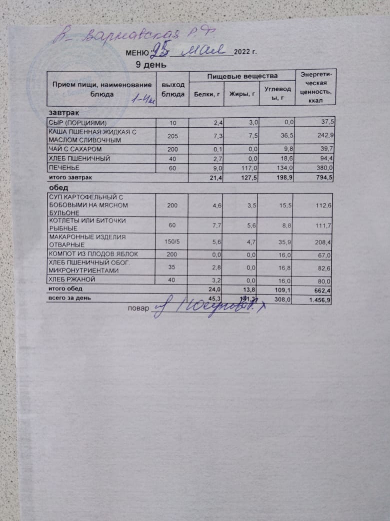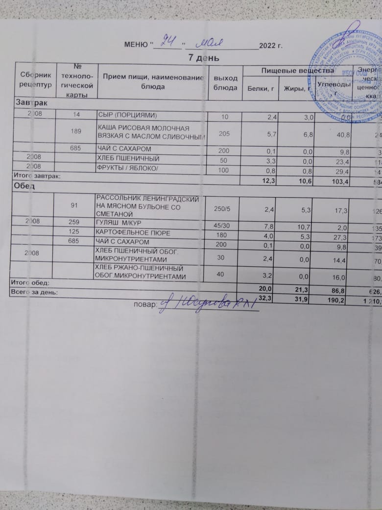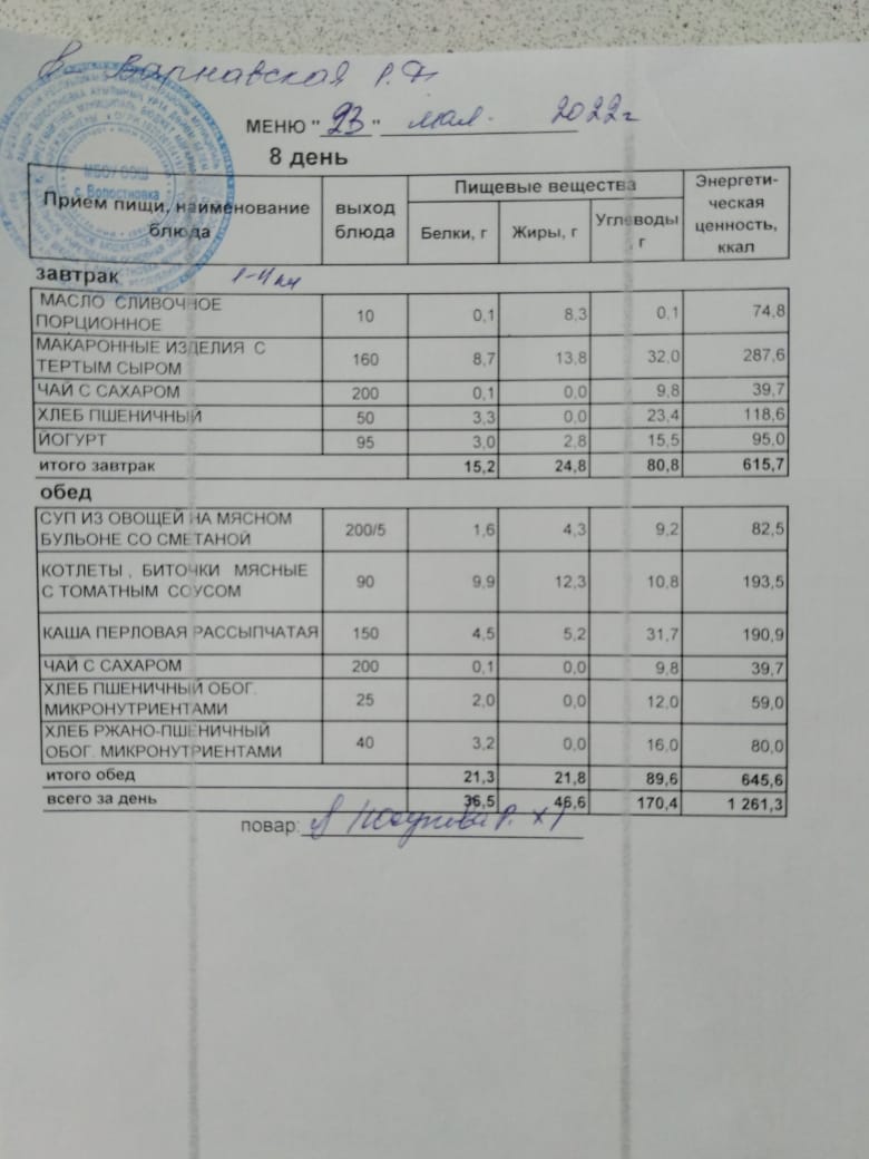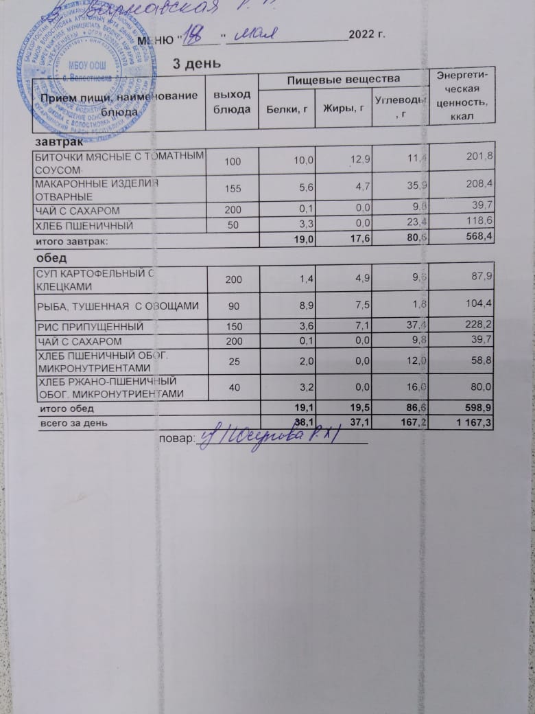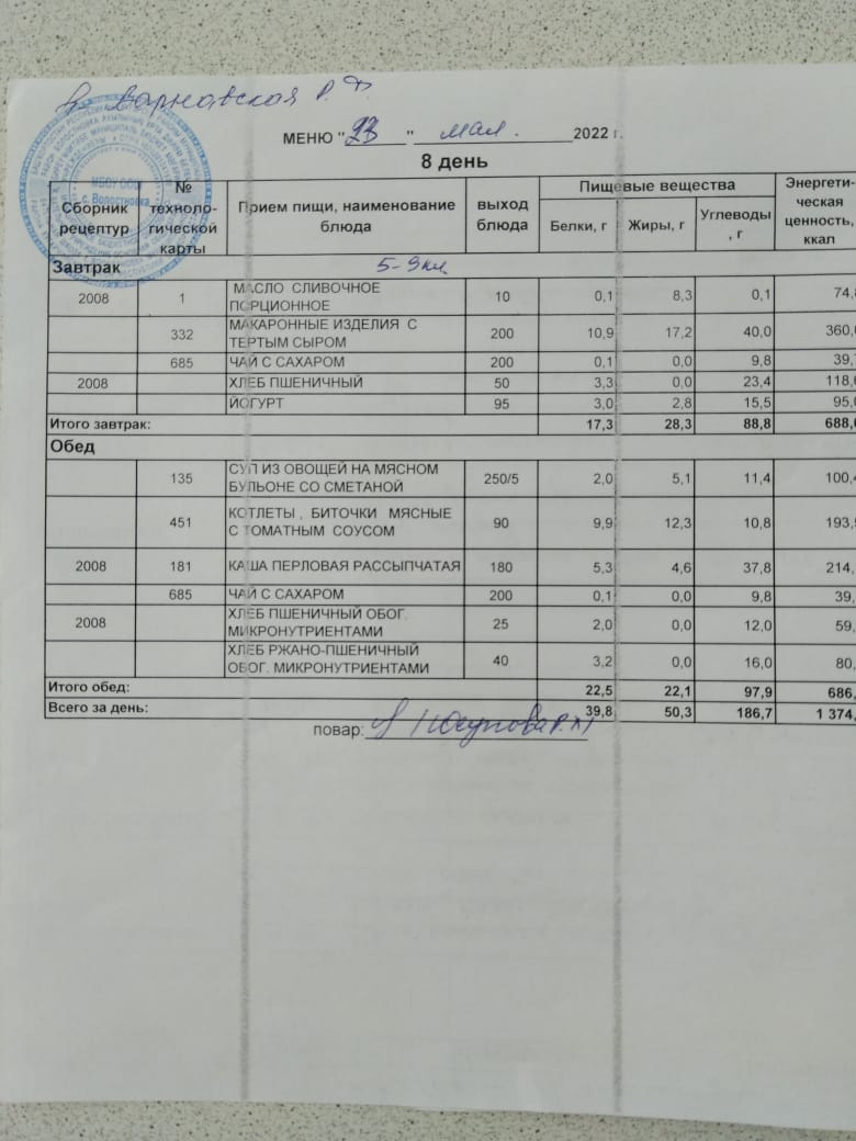 Стоимость школьного питания