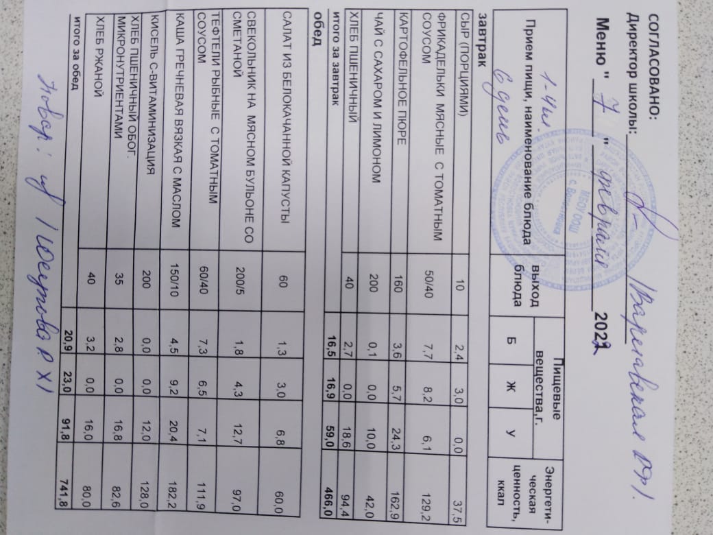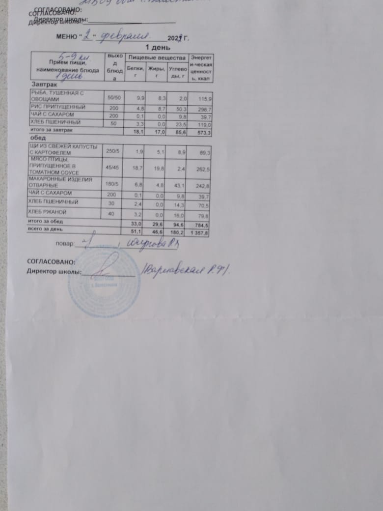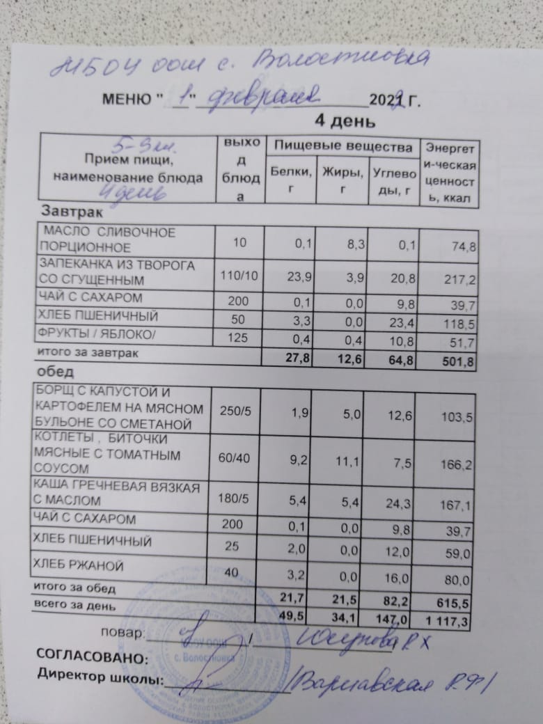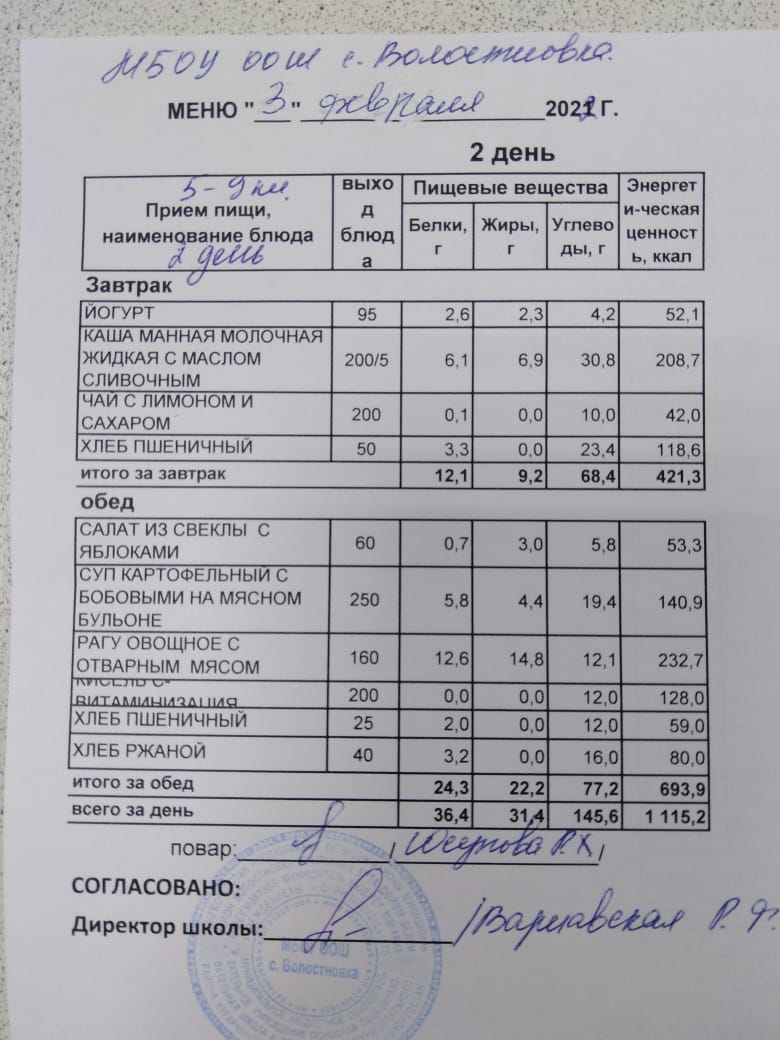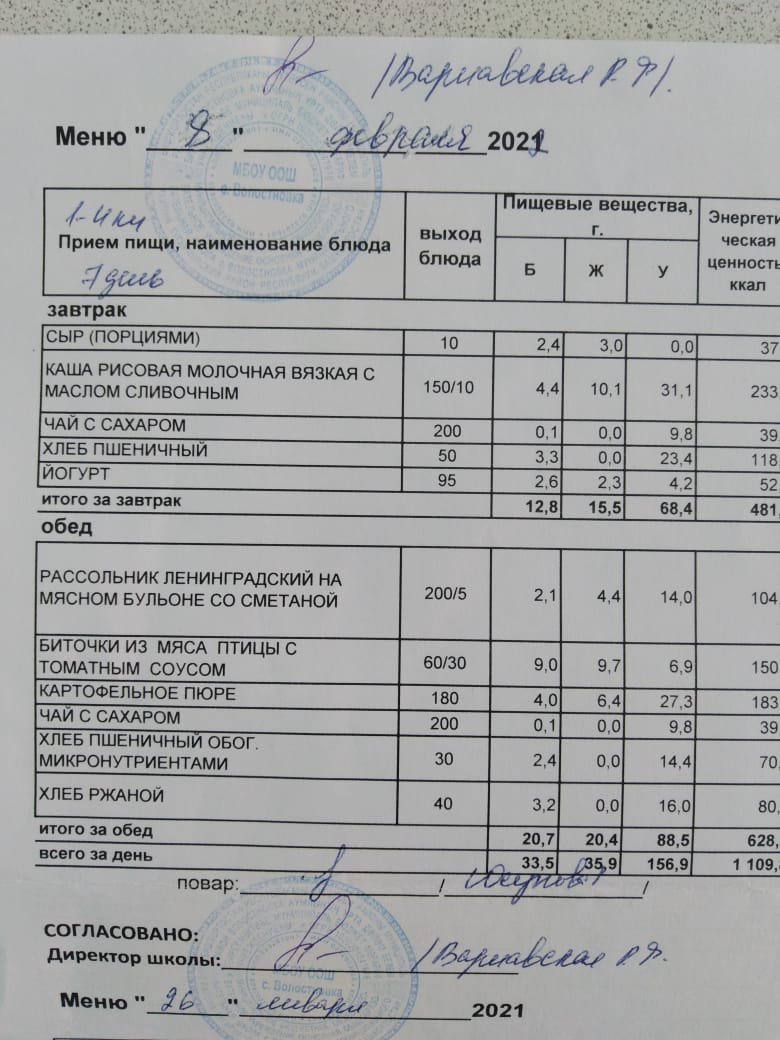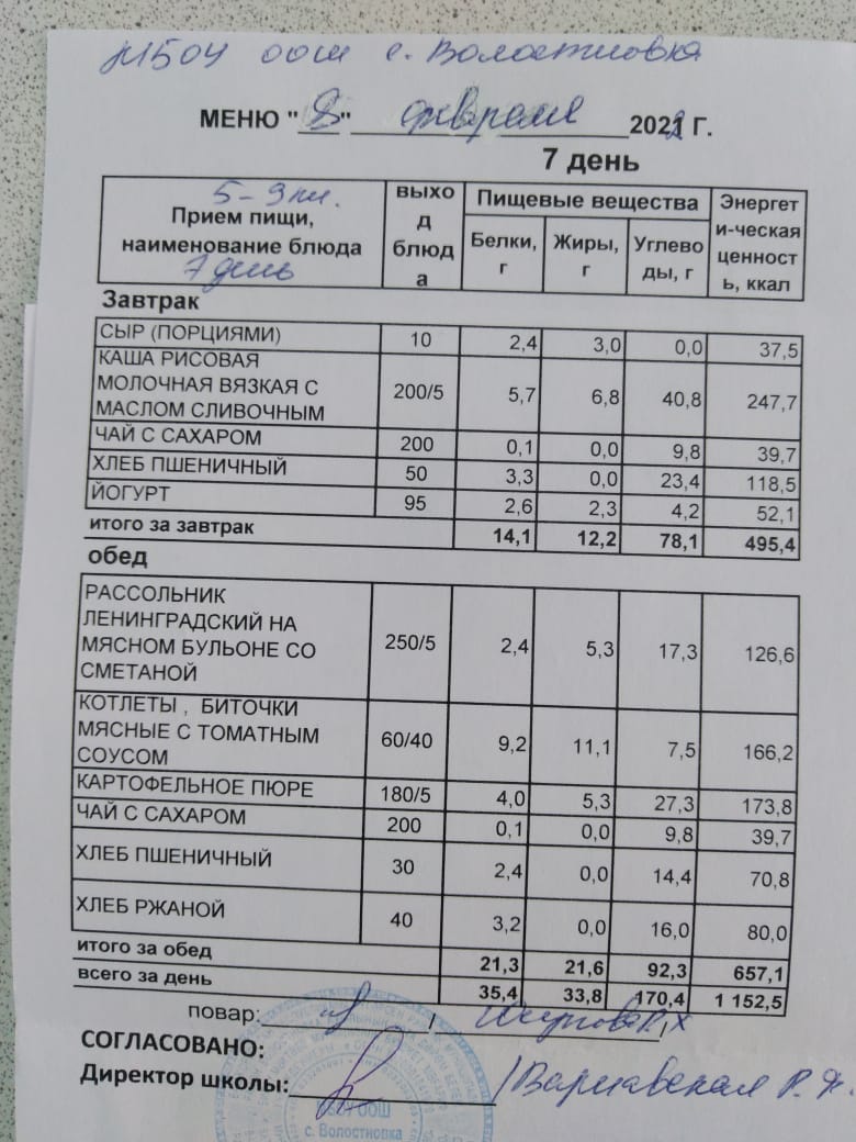 Стоимость школьного питания