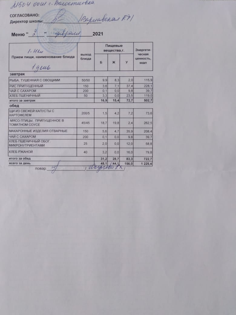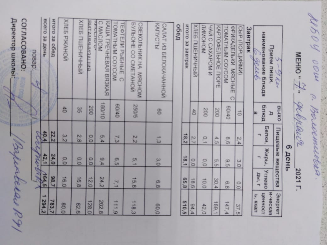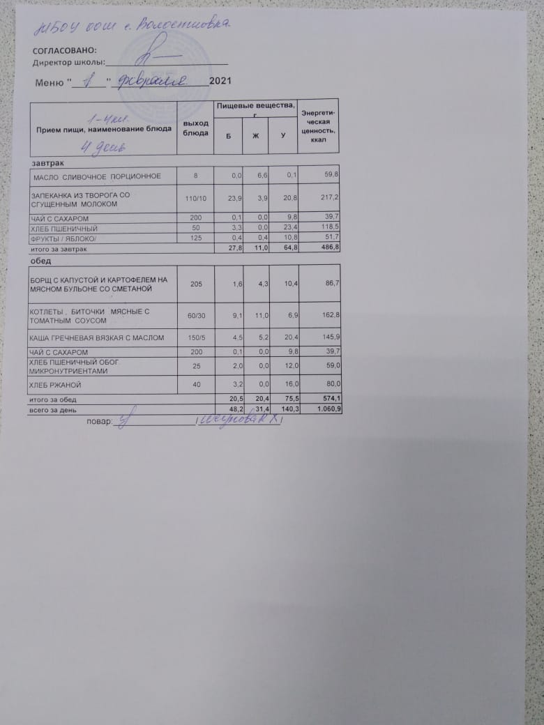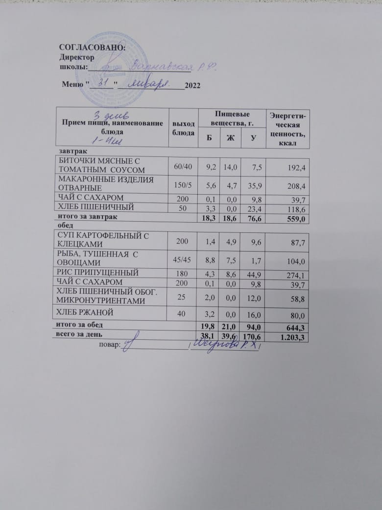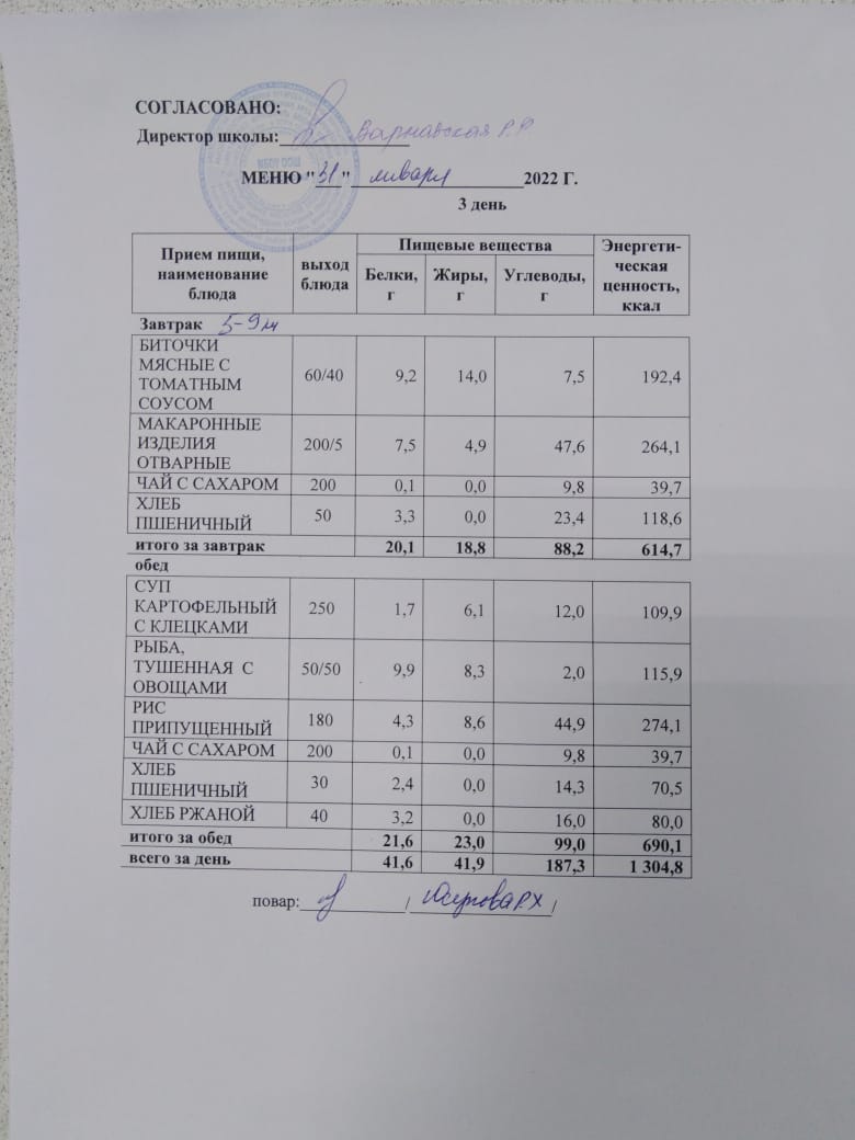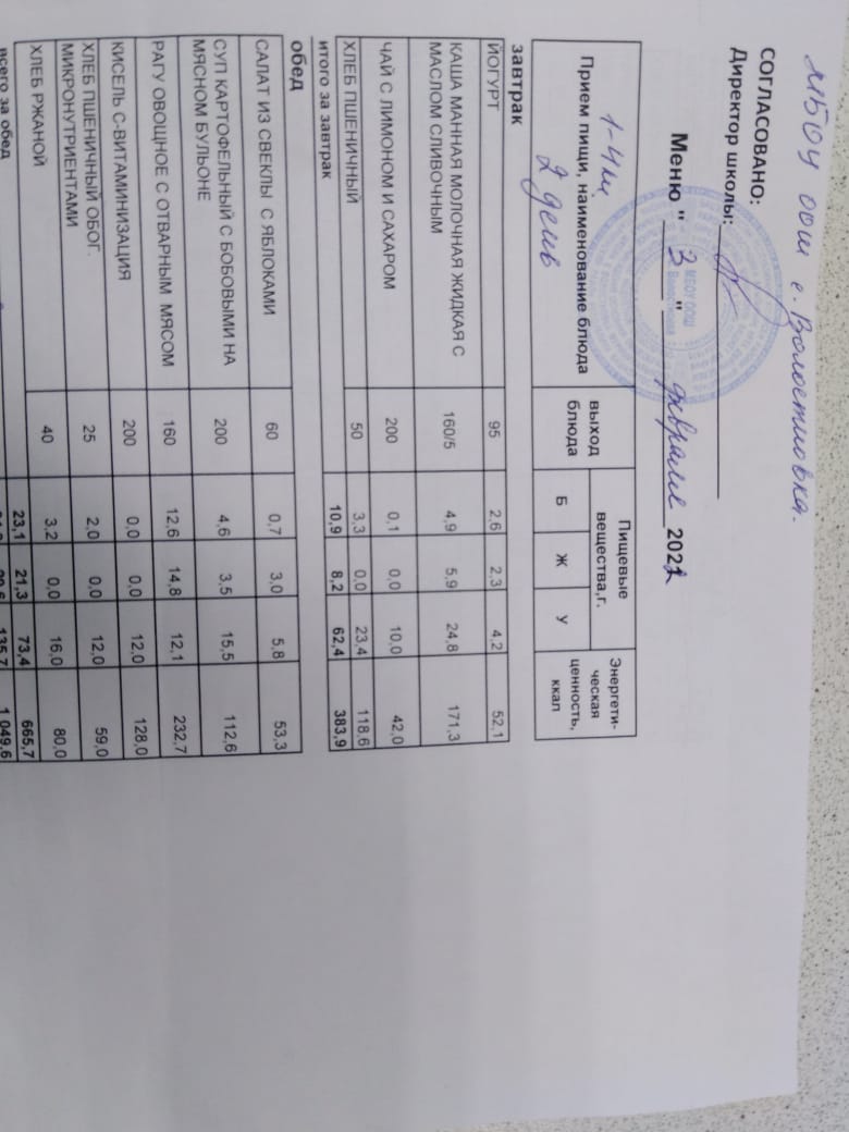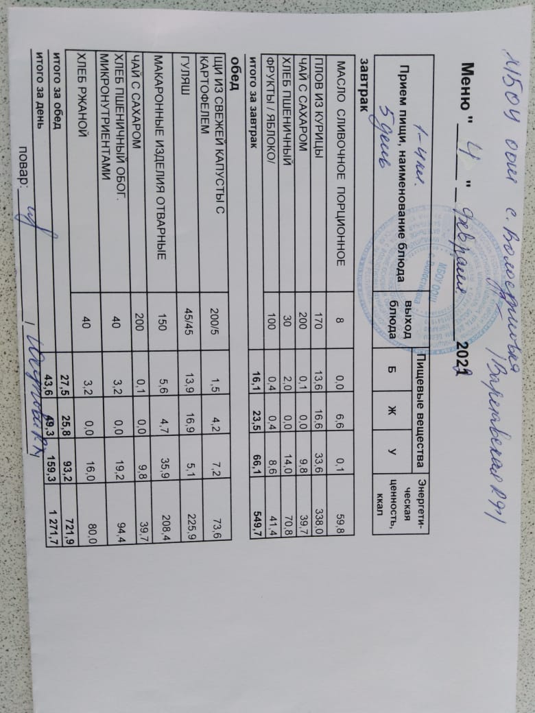 Стоимость школьного питания