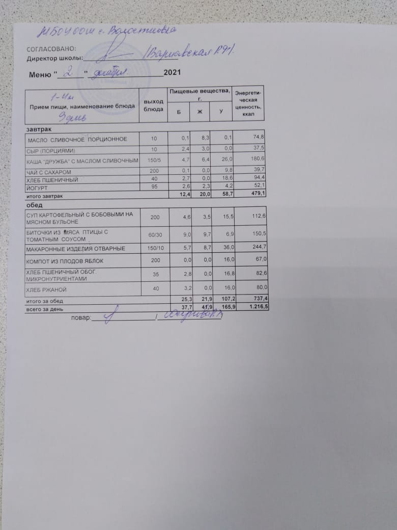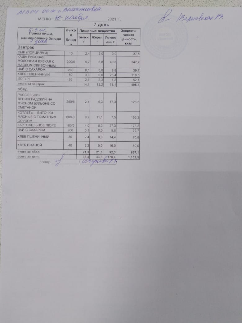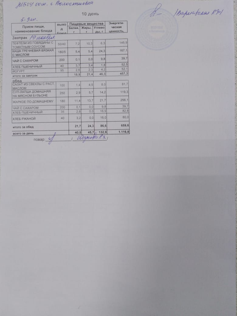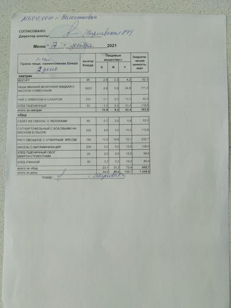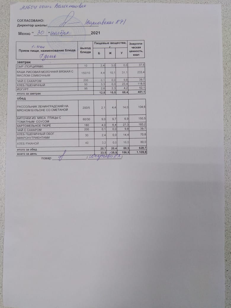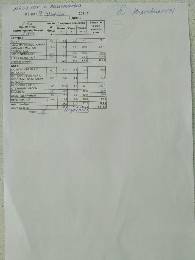 Стоимость школьного питания