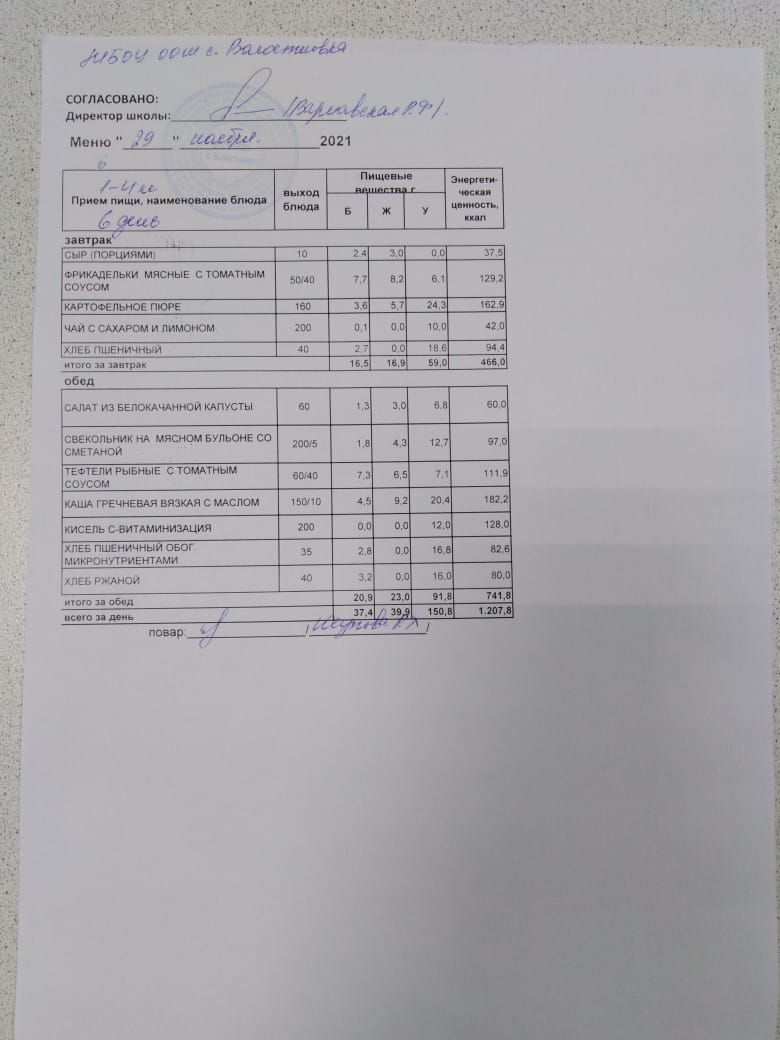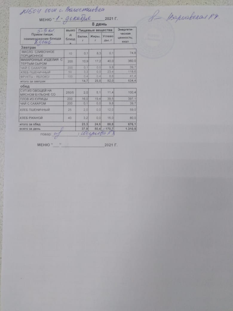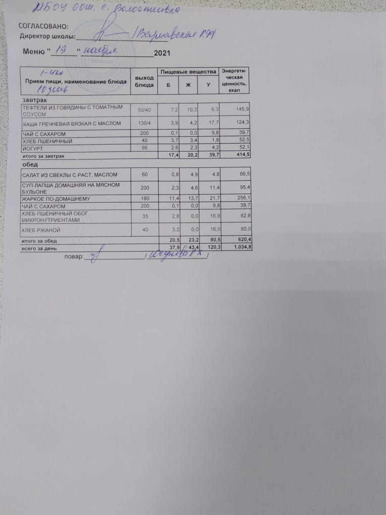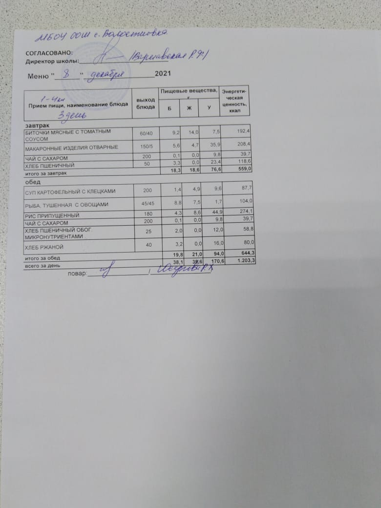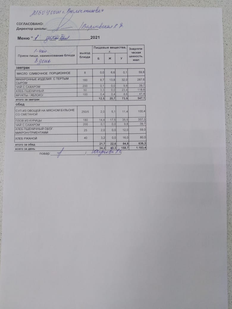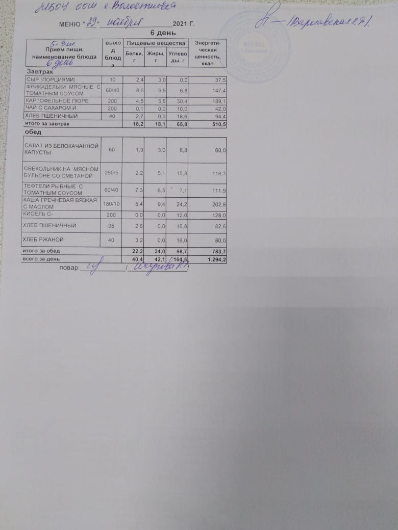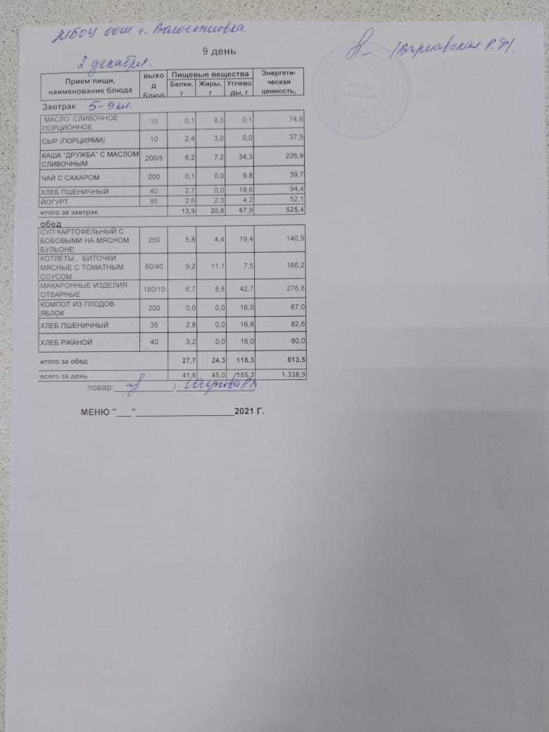 Стоимость школьного питания