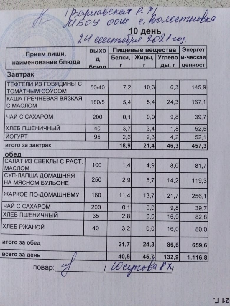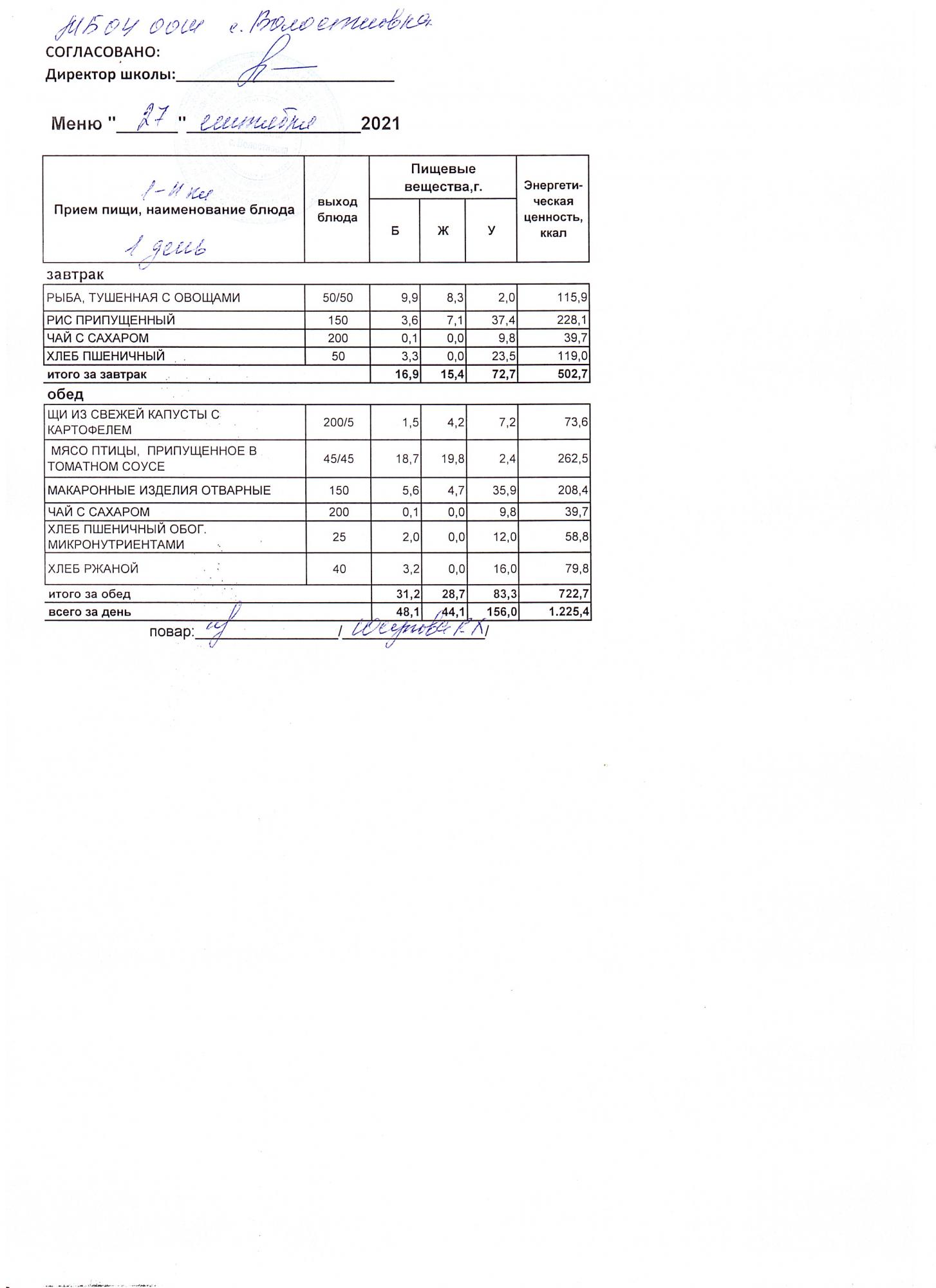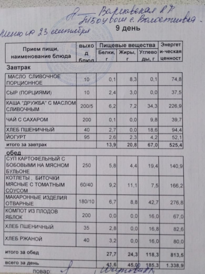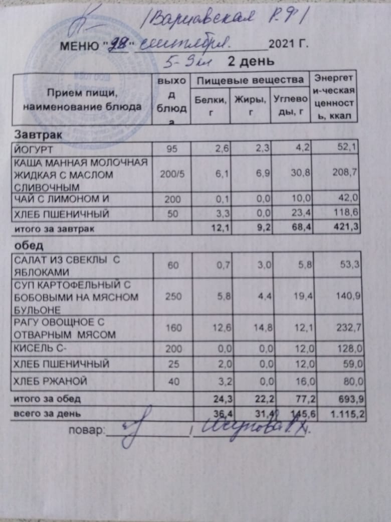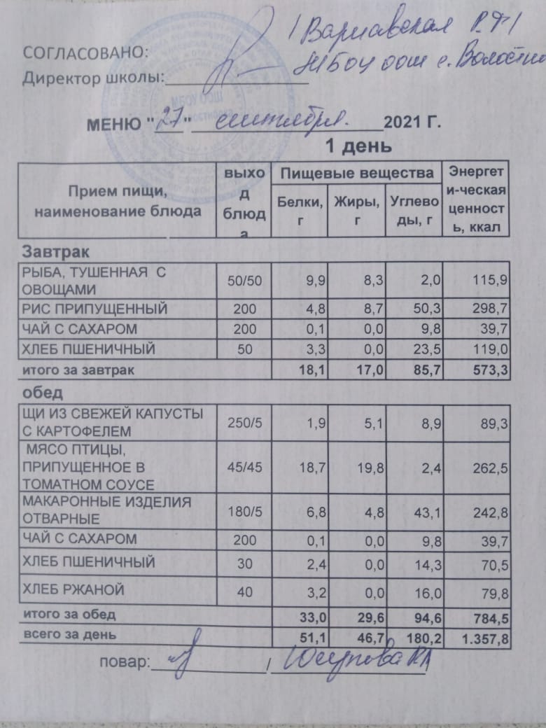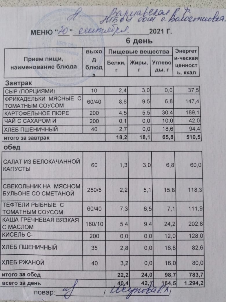 Стоимость школьного питания
