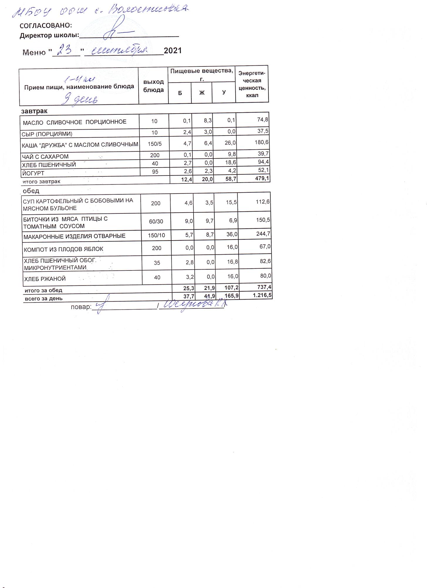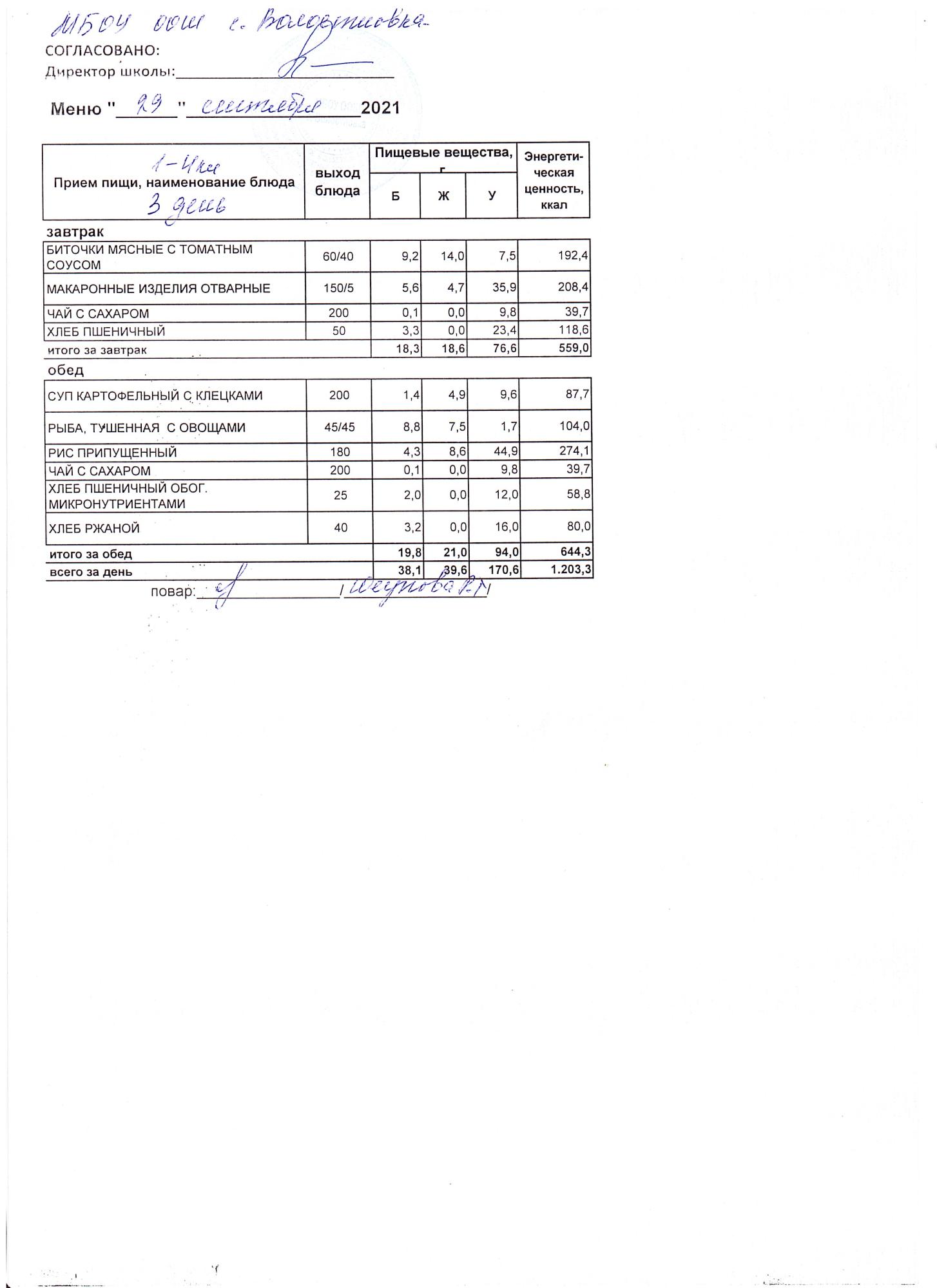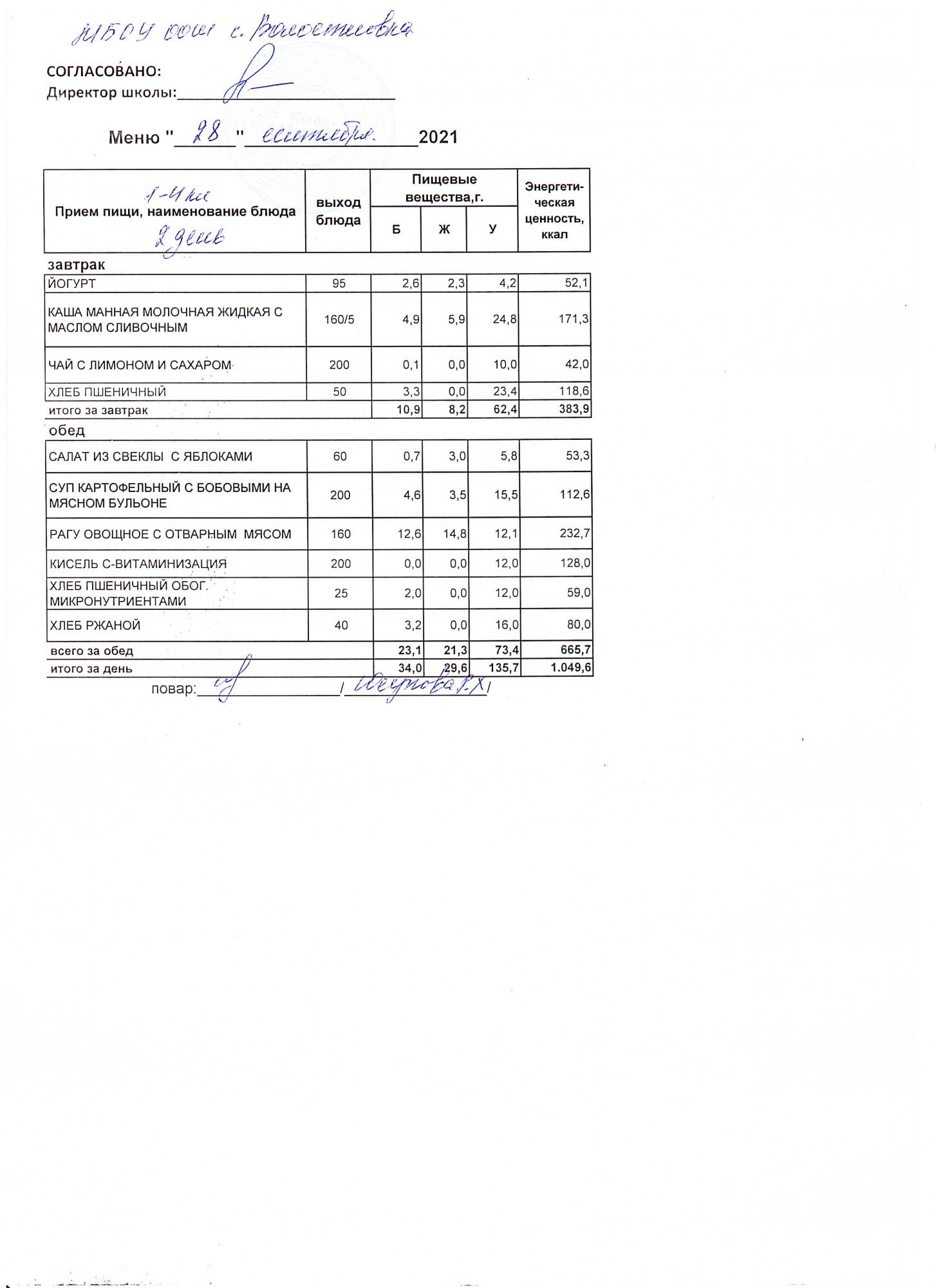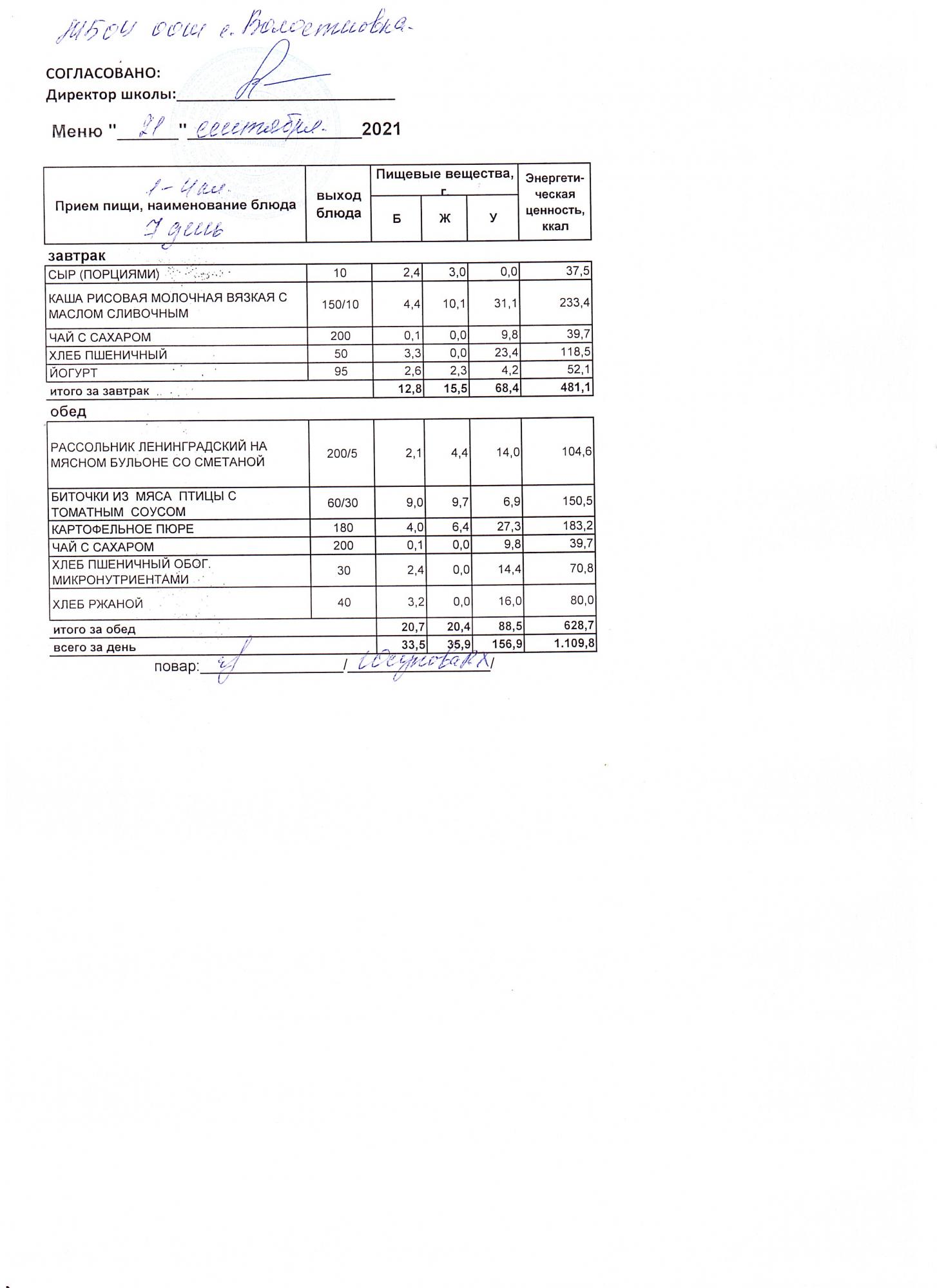 Стоимость школьного питания